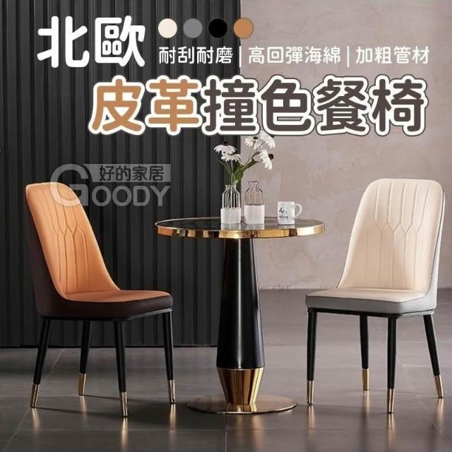 兩入椅組合 好的家居 北歐皮革撞色餐椅 (椅子 餐椅 椅 休閒椅 椅子北歐 北歐風椅子 靠背椅子 辦公椅子)
