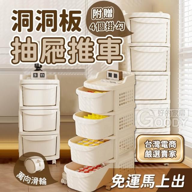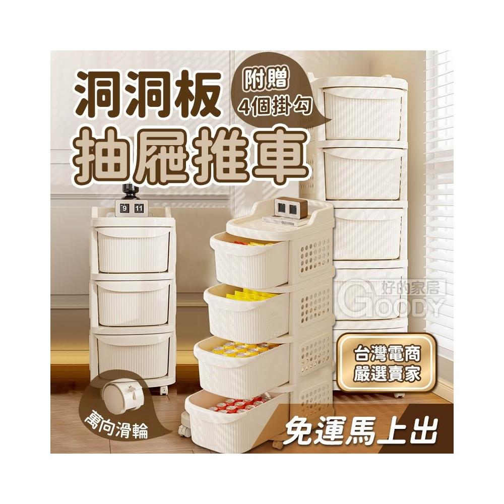 洞洞板抽屜推車 三層/四層/五層 好的家居(廚房收納 置物推車 推車收納 收納推車 抽屜收納櫃 滾輪收納架 抽屜推車收納 書包置物架)