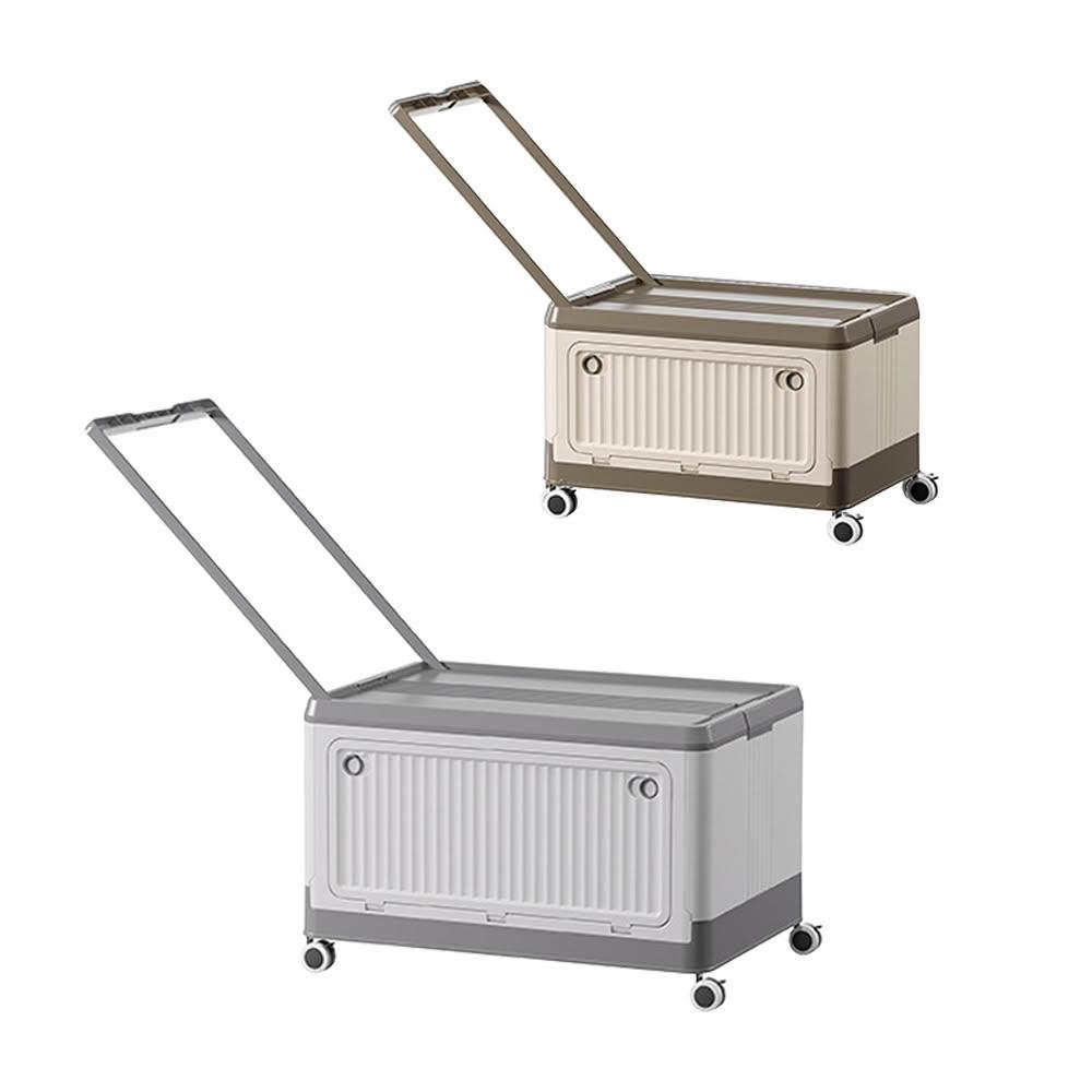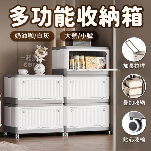 多功能收納箱 大號 白灰/奶油咖 好的家居(收納箱 摺疊收納箱 整理箱 置物箱 儲物箱 大容量折疊箱 帶輪儲物箱 衣物整理箱 零食收納櫃)