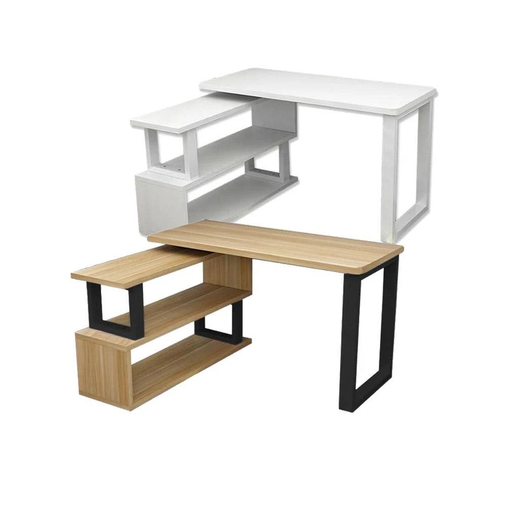 好的家居 多功能兩用旋轉書桌 ⭐ 120cm/140cm 白色/淺胡桃 辦公桌 側架 書架 層架 電腦桌 長桌