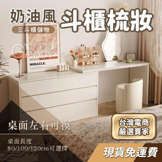 L型桌面配置✨奶油風斗櫃梳妝台/化妝台✨櫃子 桌子 收纳櫃 梳妝臺 三斗櫃 梳妝桌 化妝桌 抽屜置物櫃 斗櫃