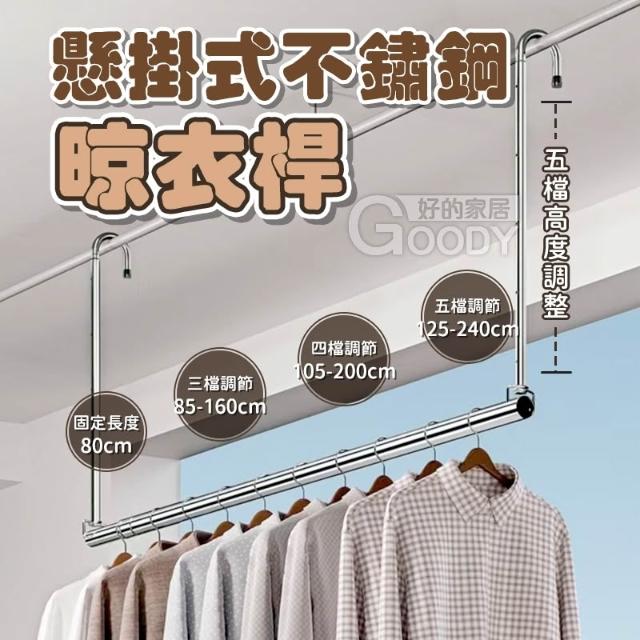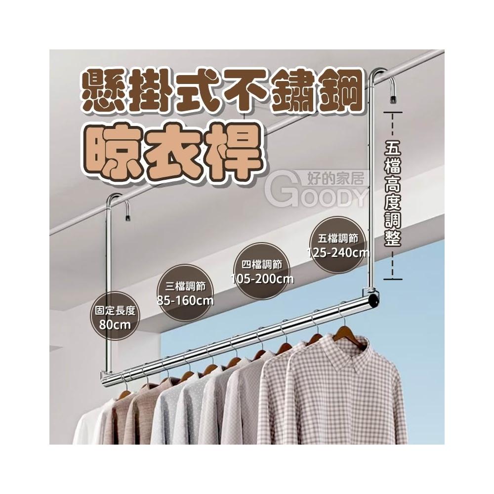 🏢懸掛式不鏽鋼晾衣桿🏢可掛室內 晾衣桿 不銹鋼晾衣桿 陽臺曬衣架 伸縮晾衣架 降調節晾曬架 懸掛式衣架