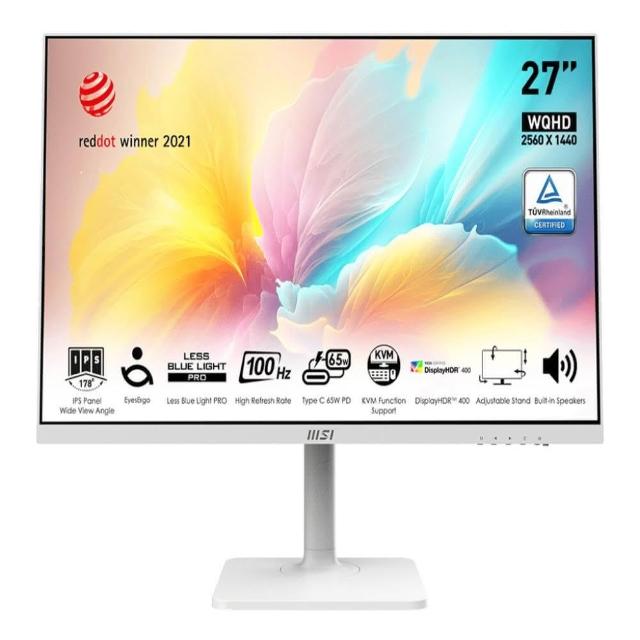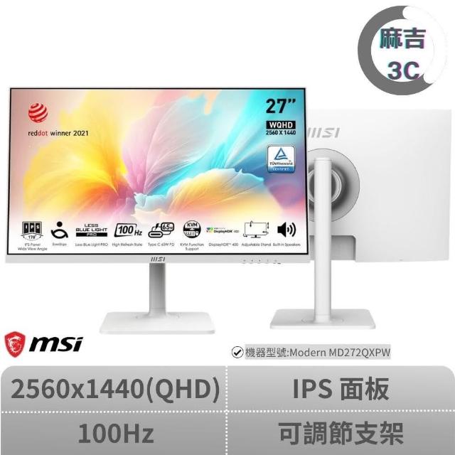 MSI 微星▲27吋平面螢幕▲ 27吋 Modern MD272QXPW WQHD/100hz/IPS/內建揚聲器/可調節支架/白色