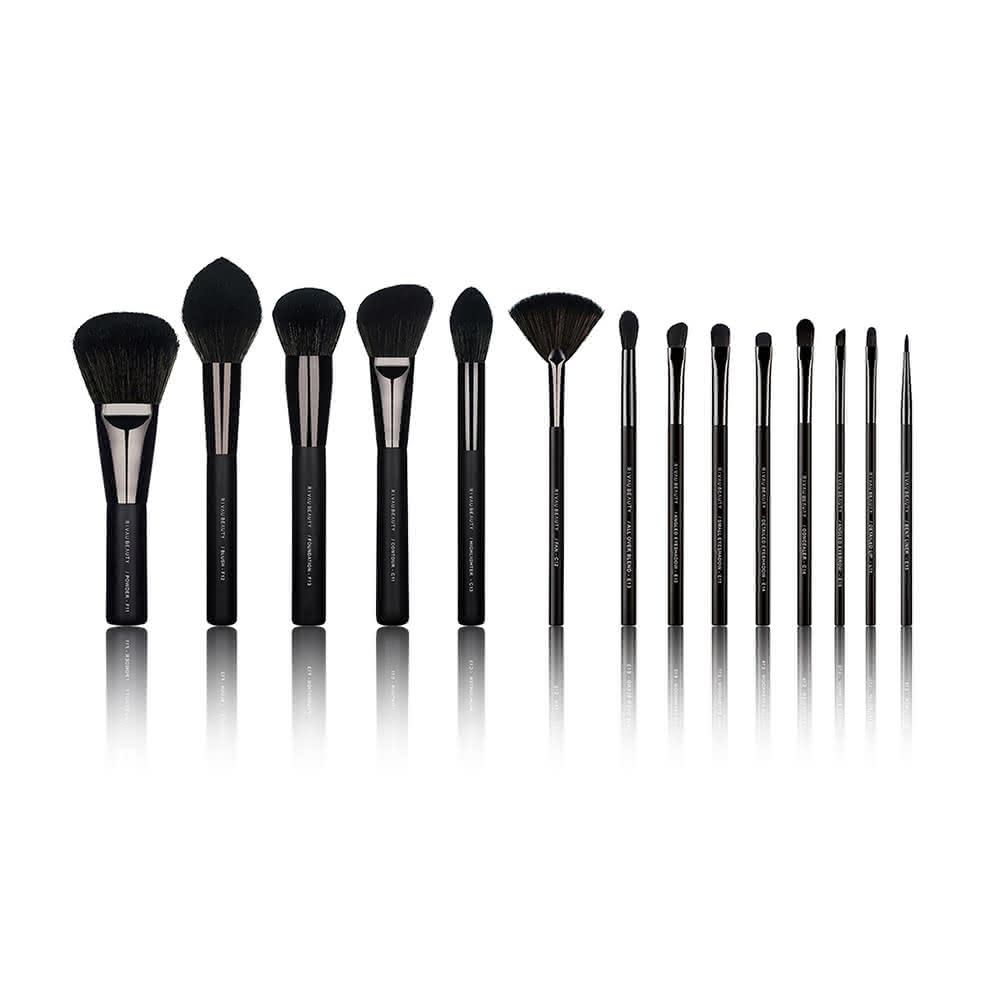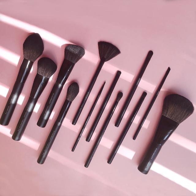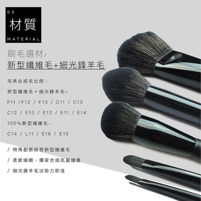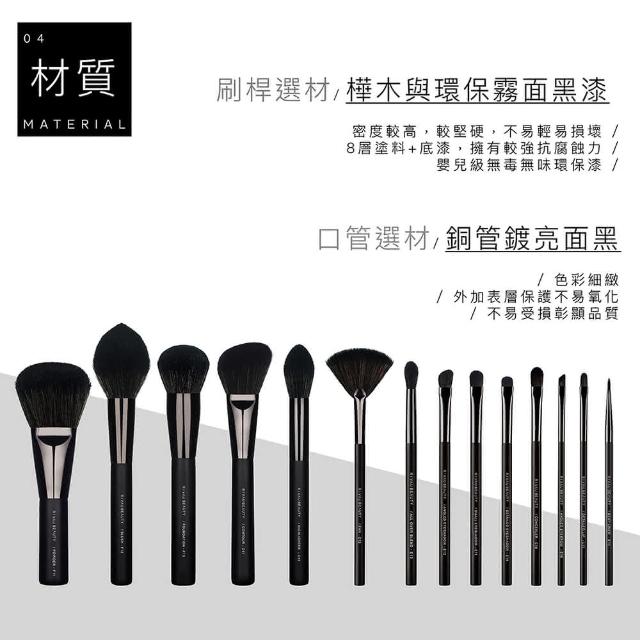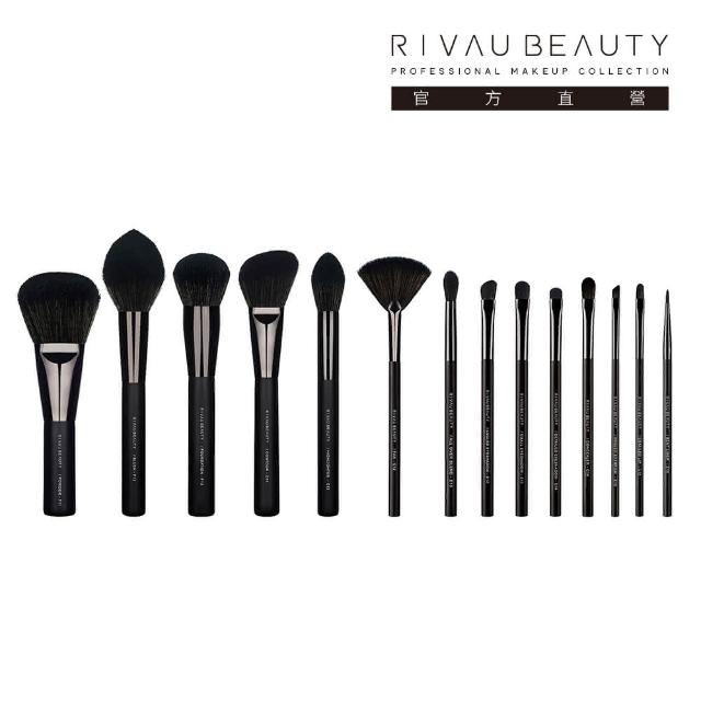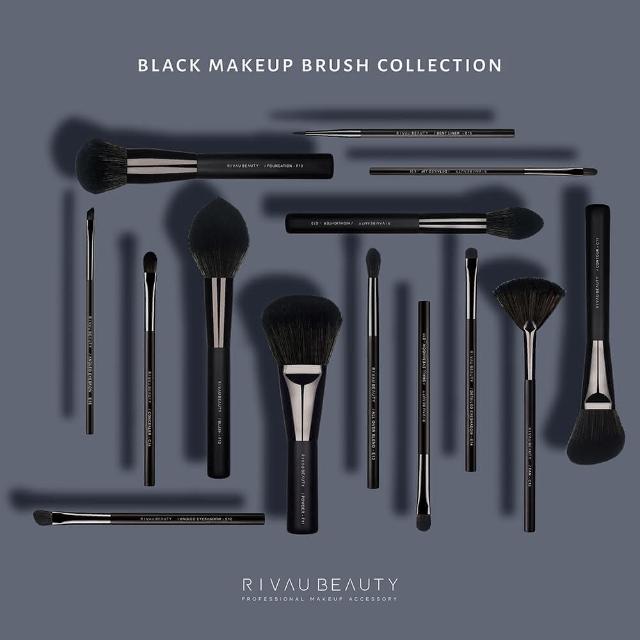 RIVAU BEAUTY高級纖維混羊毛黑色刷具14隻刷具組(化妝刷 蜜粉刷 粉底刷 腮紅刷 眼影刷 眉刷 唇刷)