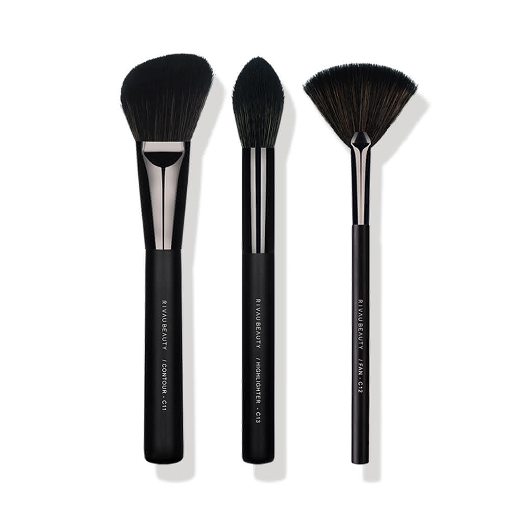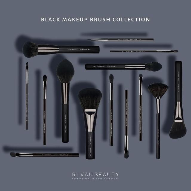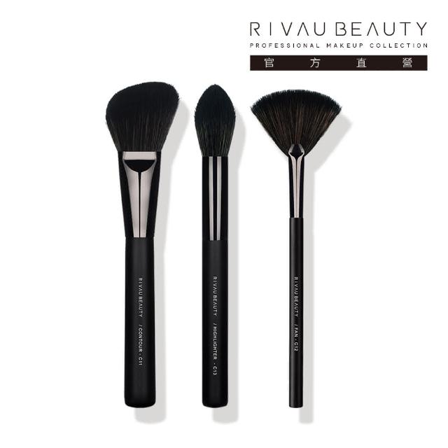 RIVAU BEAUTY高級纖維混羊毛黑色修容刷具3隻刷具組(修容刷 打亮刷 扇形刷 化妝刷)