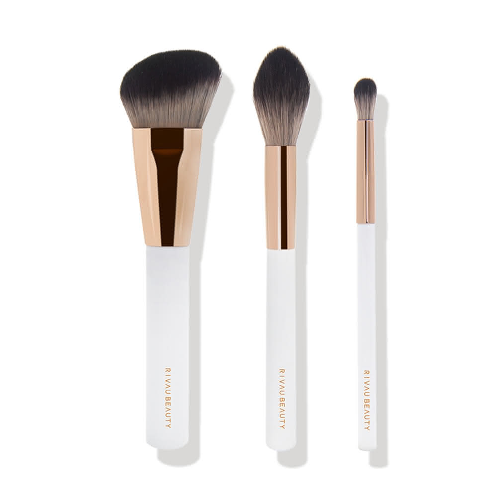 RIVAU BEAUTY極簡白色刷具系列 修容刷具3隻組(新型柔軟纖維毛化妝刷 鼻影刷 打亮刷 暈染刷)