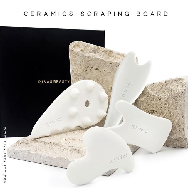 RIVAU BEAUTY頭皮活絡陶瓷刮痧板(附贈絨布袋 按摩 陶瓷按摩板 刮痧小物 頭皮按摩 頭部按摩 按摩SPA)