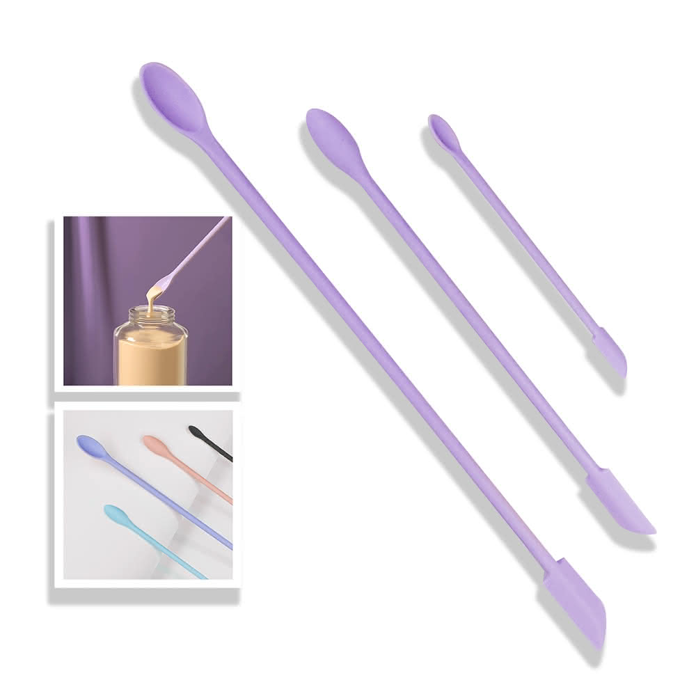 RIVAU BEAUTY多功能矽膠雙頭迷你刮刀三件組-四色(化妝品挖取勺 空瓶神器 雙頭刮勺 刮刀)