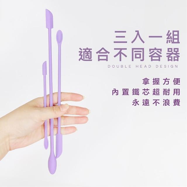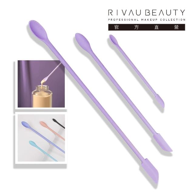 RIVAU BEAUTY多功能矽膠雙頭迷你刮刀三件組-四色(化妝品挖取勺 空瓶神器 雙頭刮勺 刮刀)