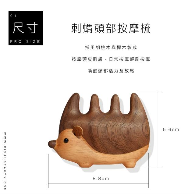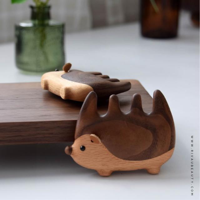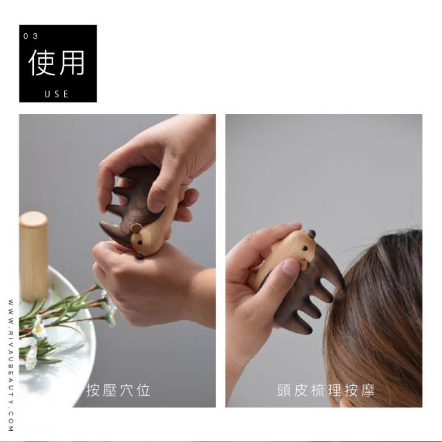 RIVAU BEAUTY 刺蝟頭部按摩梳 | 胡桃木梳 梳子 頭皮按摩 頭皮按摩刷 寬齒按摩梳 經絡梳 按摩梳 木梳