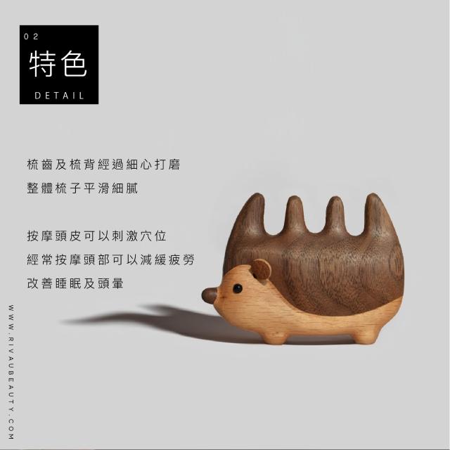 RIVAU BEAUTY 刺蝟頭部按摩梳 | 胡桃木梳 梳子 頭皮按摩 頭皮按摩刷 寬齒按摩梳 經絡梳 按摩梳 木梳
