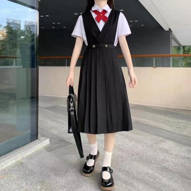 綺羅QILIO 護奶裙✨JK套裝裙 可搭短款西裝外套 學生制服 大尺碼背帶裙 高腰百搭套裝 長裙 學院風