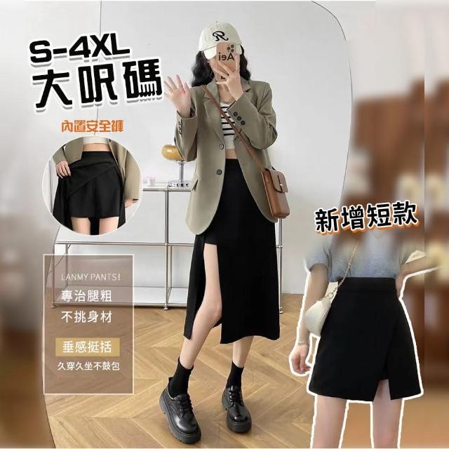 綺羅 大碼開叉長裙褲裙百褶裙✨S-4XL 日系韓版 學院風 中長裙 西裝裙 假兩件褲裙 高腰長裙 包臀裙 半身裙