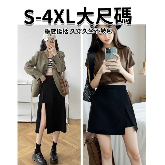 綺羅 大碼開叉短裙✨S-4XL 假兩件 褲裙 開叉裙 高腰a字裙 包臀裙 半身裙 修身顯瘦