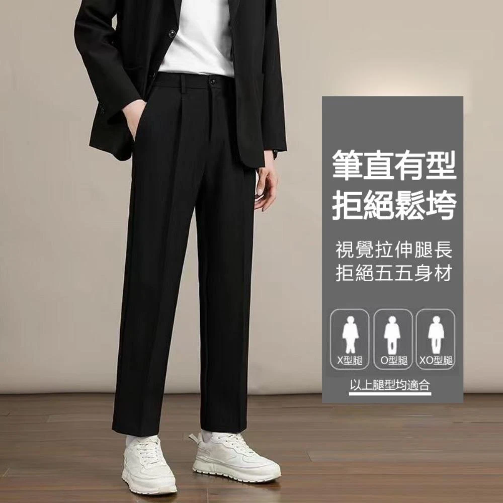 綺羅 西裝褲透氣涼感褲男西褲長褲 韓版直筒褲 黑色休閒寬鬆褲子 男裝長褲 西服辦公服套裝