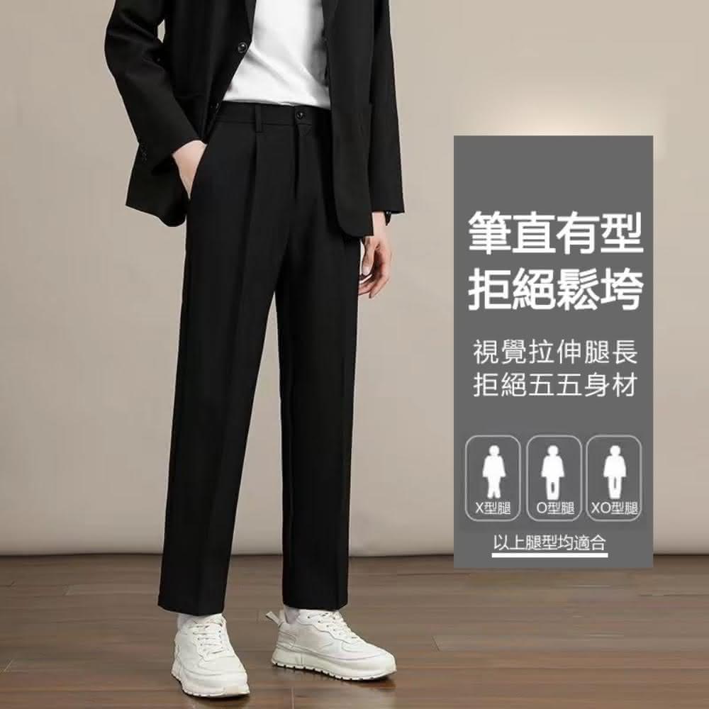 綺羅 西裝褲透氣涼感褲男西褲長褲 韓版直筒褲 黑色休閒寬鬆褲子 男裝長褲 西服辦公服套裝