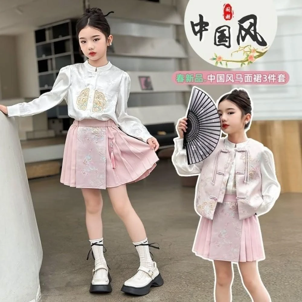 女童國風套裝兒童百褶裙童裝