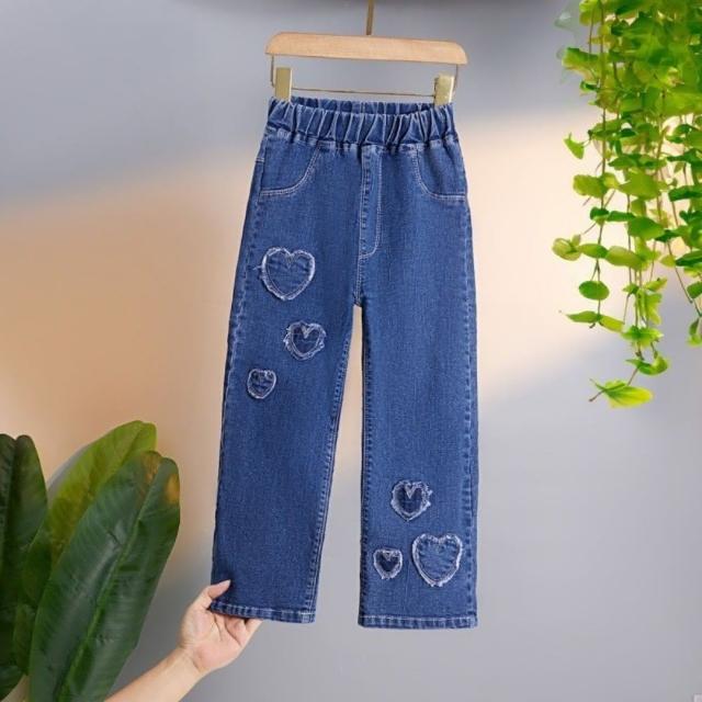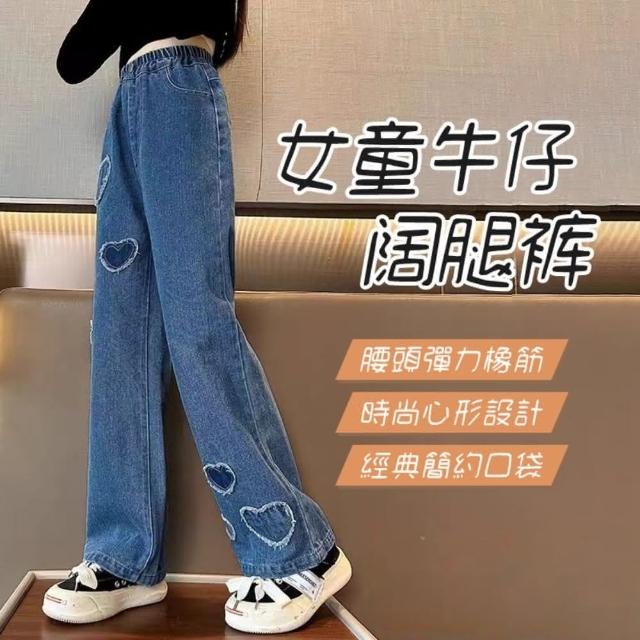 綺羅 女童牛仔褲長褲(版型稍小建議大一碼)✨兒童春夏秋冬褲 直筒褲 闊腿褲 九分褲小腳褲 中大童女孩長褲韓版洋氣花苞褲喇叭褲