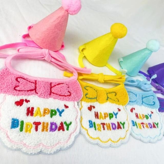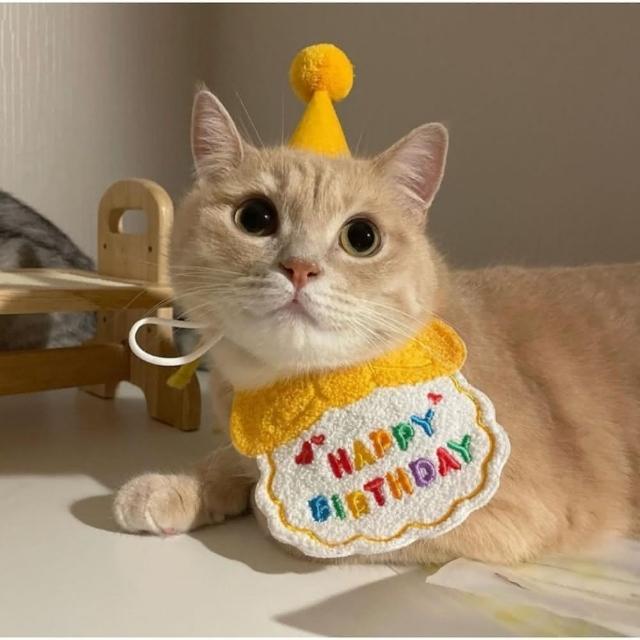 綺羅 貓咪慶生帽子 生日領巾 寵物圍兜 刺繡口水巾 貓狗生日派對頭飾 生日拍照項圈 生日帽大禮包