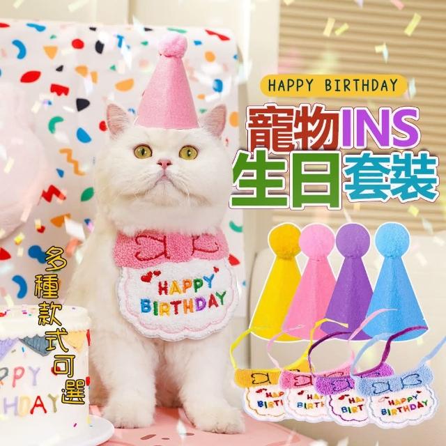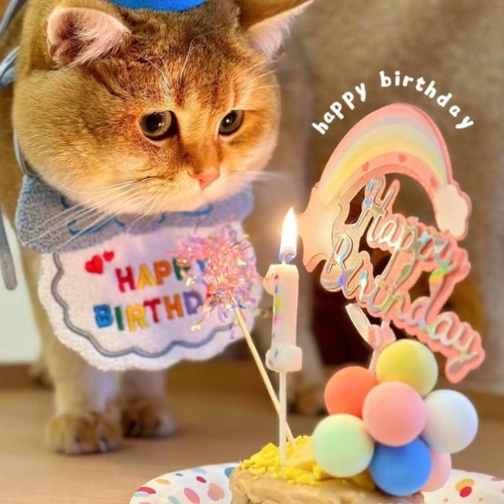 綺羅 貓咪慶生帽子 生日領巾 寵物圍兜 刺繡口水巾 貓狗生日派對頭飾 生日拍照項圈 生日帽大禮包