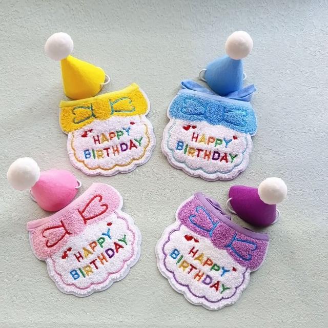綺羅 貓咪慶生帽子 生日領巾 寵物圍兜 刺繡口水巾 貓狗生日派對頭飾 生日拍照項圈 生日帽大禮包