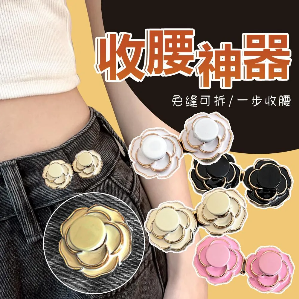 綺羅 收腰別針山茶花收腰釦 褲腰收緊神器 牛仔褲 大小調節 固定扣 免縫可拆 胸針別針