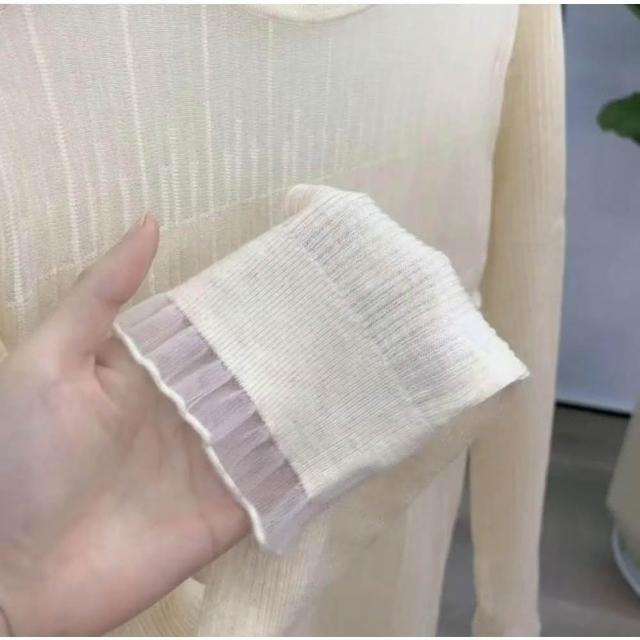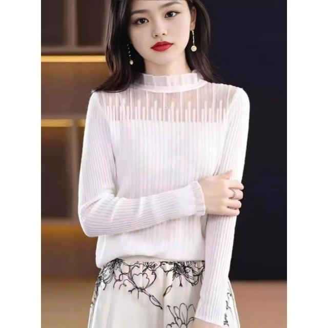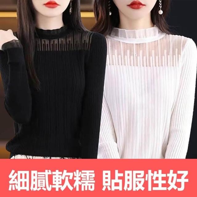 綺羅 針織衫 打底衫✨內搭衣女裝襯衫上衣 法式蕾絲花邊領半高領洋裝透視裝 春秋新款百搭性感薄毛衣外套長袖