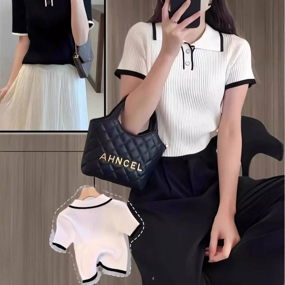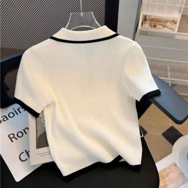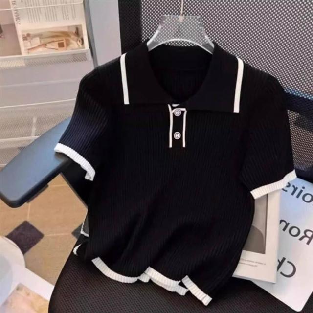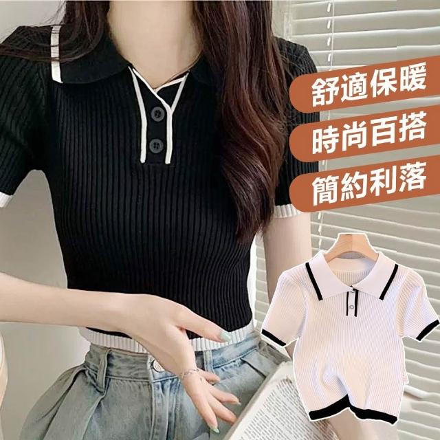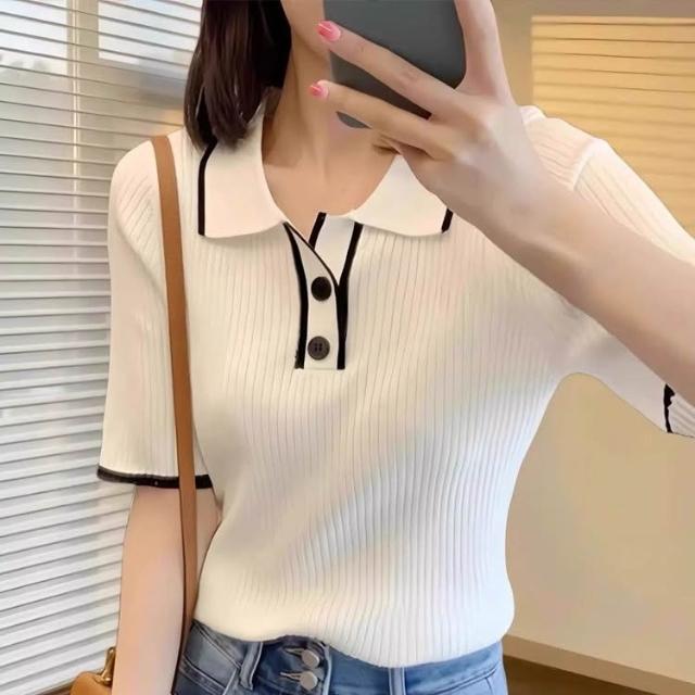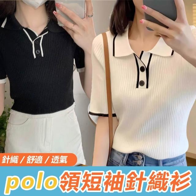 綺羅 台灣發貨 💟 短袖上衣小香風女裝t恤千金風夏裝v領內搭衣短袖T恤素T POLO領針織衫短款上衣T恤寬鬆上衣