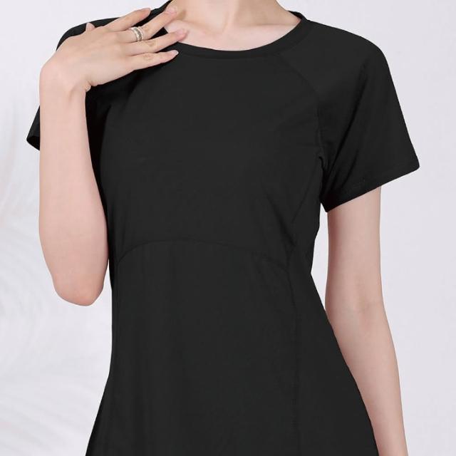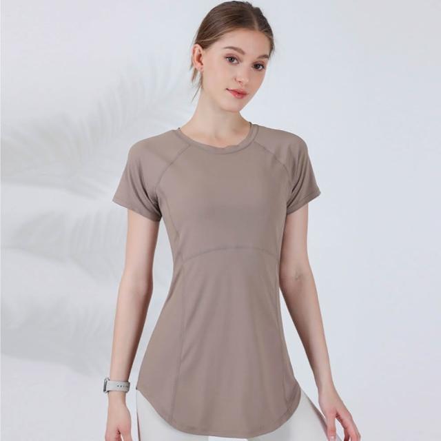 FT SHOP長版修身短袖上衣 長版設計 可遮臀部瑜伽跑步 健身 有氧 短袖上衣 運動上衣