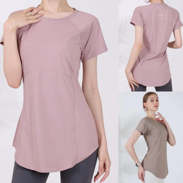 FT SHOP長版修身短袖上衣 長版設計 可遮臀部瑜伽跑步 健身 有氧 短袖上衣 運動上衣