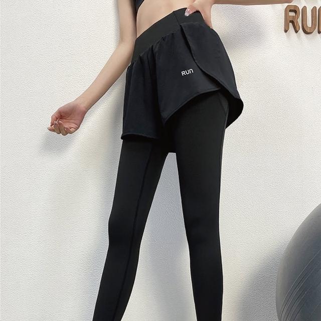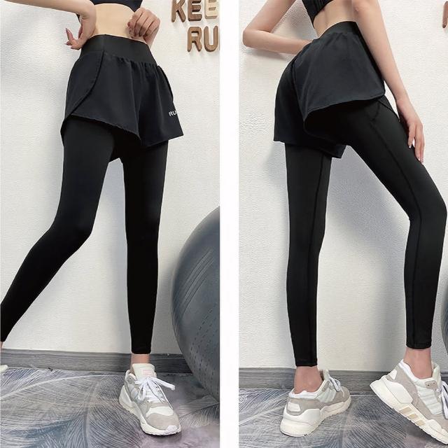 FT SHOP假兩件瑜珈運動褲 有口袋設計 防走光 彈性褲頭瑜珈褲 運動褲 緊身褲 健身褲