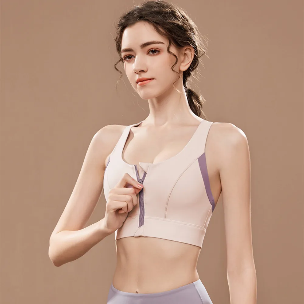 FT SHOP工字前拉鍊運動內衣拚色設計 一體式胸墊 固定式胸墊運動內衣 固定罩杯 運動背心 瑜珈內衣