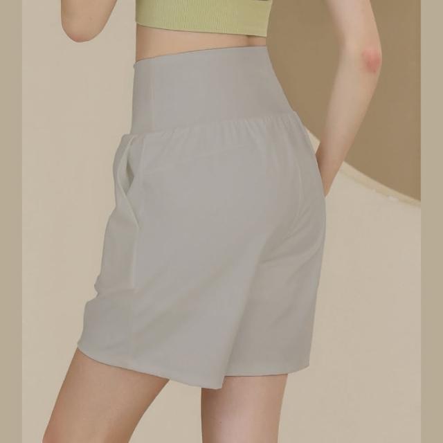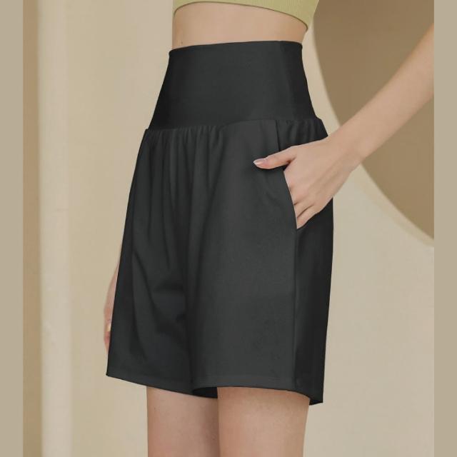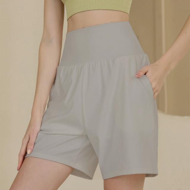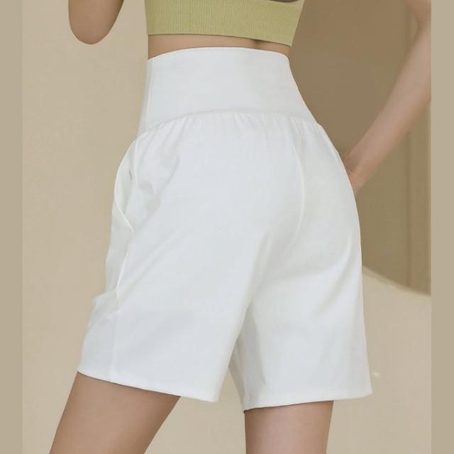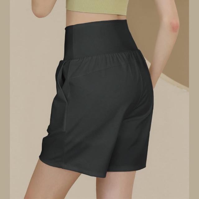 FT SHOP高腰寬版五分運動短褲 有口袋款 高腰設計收小腹運動短褲 休閒短褲 短褲