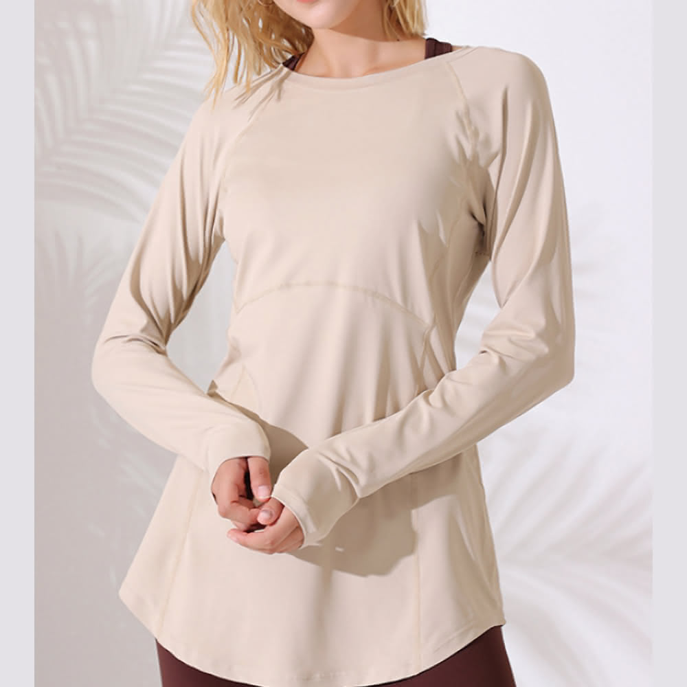 FT SHOP長版修身長袖上衣 長版設計 可遮臀部 修飾顯瘦 瑜伽 健身 有氧運動上衣 運動長袖 瑜珈上衣