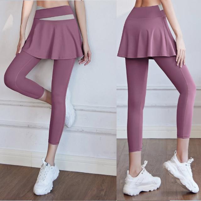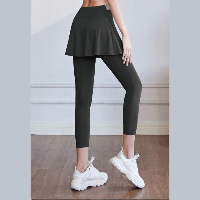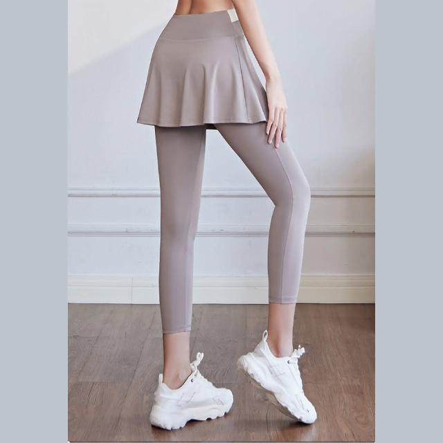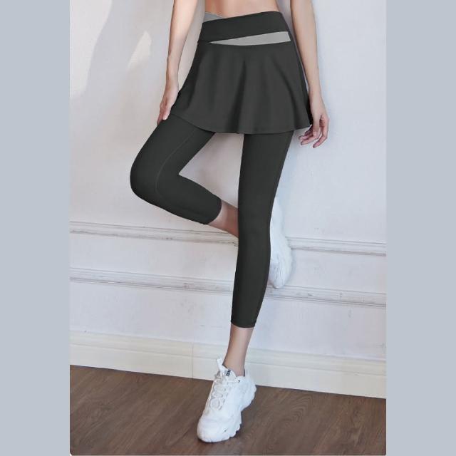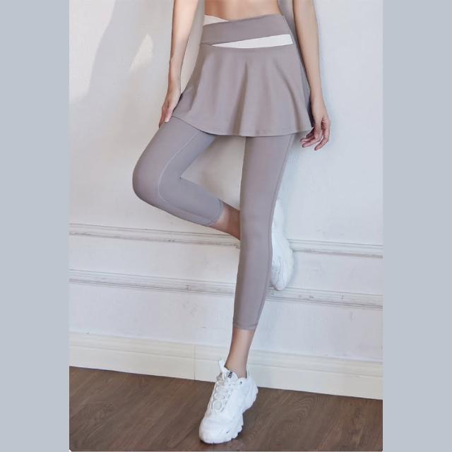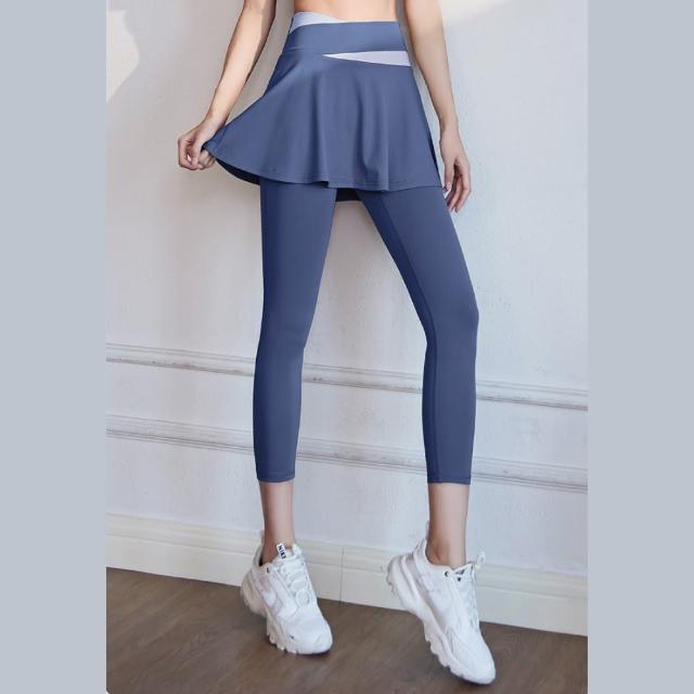 FT SHOP假兩件撞色運動褲 高腰收小腹 A字裙遮肉顯瘦 高彈力好延伸瑜珈褲 運動褲 緊身褲 健身褲