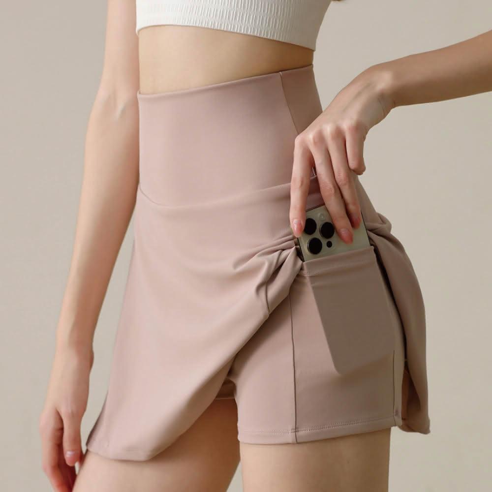 FT SHOP防走光運動褲裙 有口袋款 高腰設計收小腹 腰顯瘦效果運動短褲 休閒短褲 短褲 褲裙