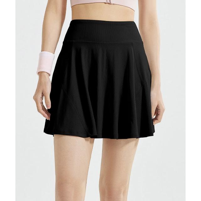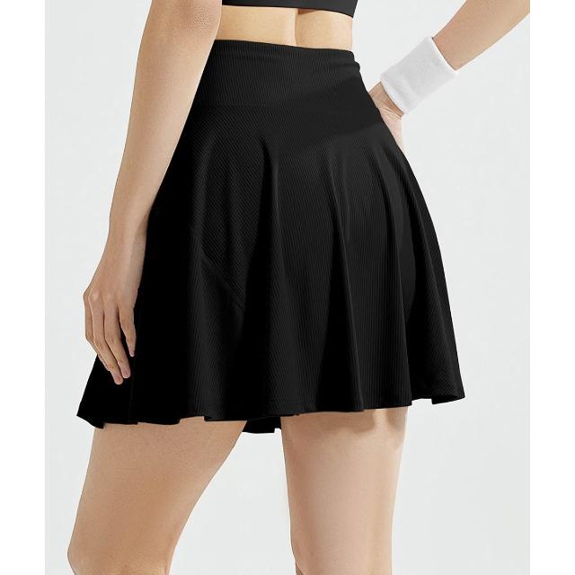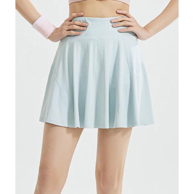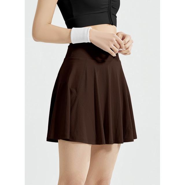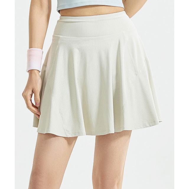 FT SHOP素色防走光運動褲裙 顯瘦直紋 顯長腿 高腰設計收小腹 腰顯瘦效果 健身瑜伽跑步 舒適透氣 運動短褲