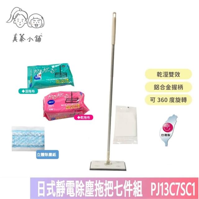 潔田屋除塵拖把 乾濕兩用靜電七件組-拖把+乾濕拖巾+立體除塵紙- PJ13C7SC11