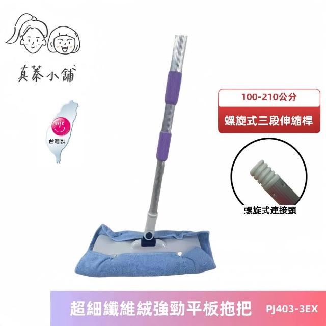 潔田屋平板拖把 超細纖維絨-螺旋式三段伸縮桿 PJ403-3EX強力吸水 去除污垢 清除灰塵