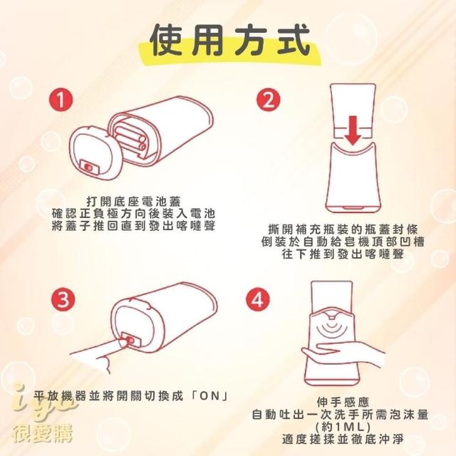 - 自動感應不需按壓,2秒迅速出泡