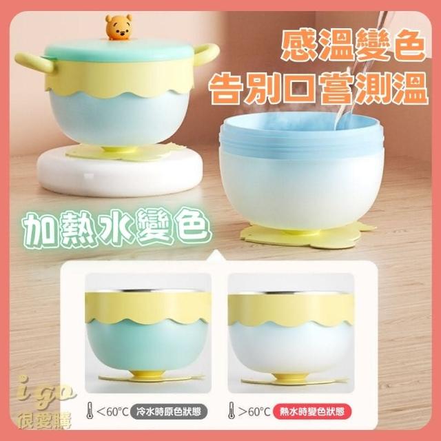Disney 迪士尼寶寶吸盤隔熱碗 注水加熱 變色 維尼 米奇 變色款(吸盤碗 隔熱碗 練習碗 學習碗 食品級)