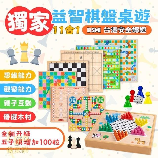 益智棋盤桌遊 十一合一桌遊 親子桌遊(五子棋 跳棋 象棋 棋盤 多功能棋盤)