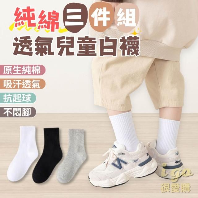 兒童純棉白襪 3雙入 純棉襪 透氣襪(寶寶襪子 學生襪 幼兒園襪子 白襪 童襪 小朋友襪子)