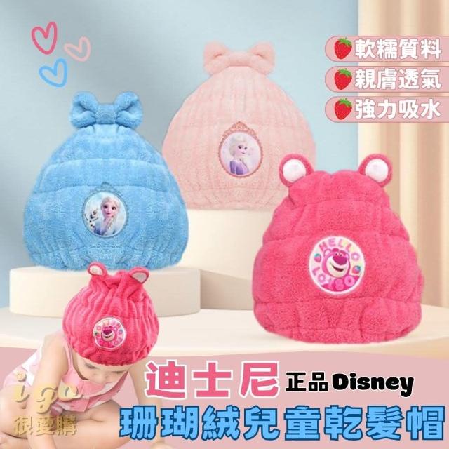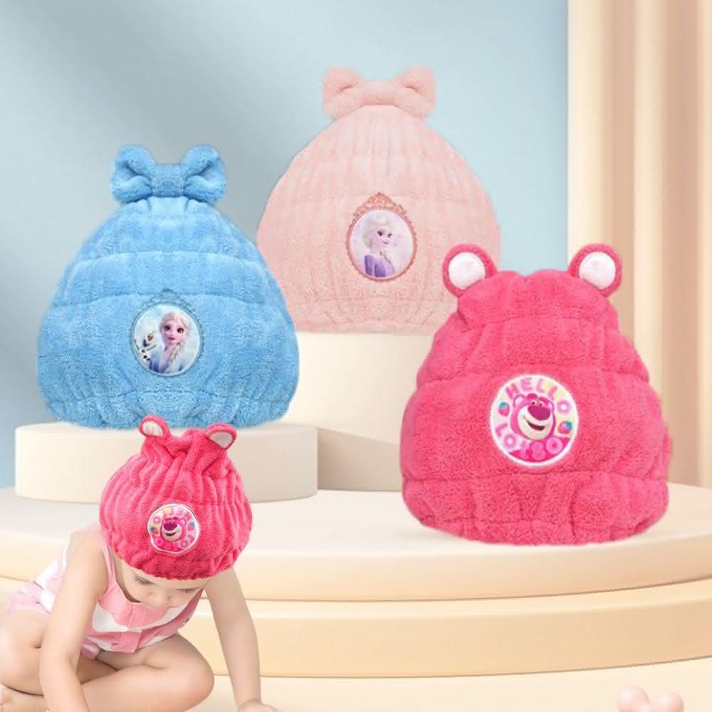 Disney 迪士尼迪士尼兒童乾髮帽 珊瑚絨 快乾 包頭巾 吸水頭巾 艾莎 草莓熊 兒童浴帽 珊瑚絨浴帽 耳朵帽 蝴蝶結
