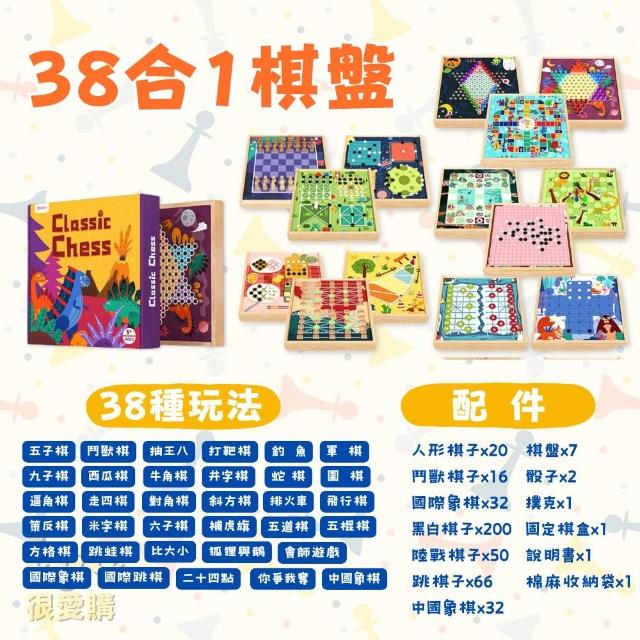 益智棋盤桌遊 三十八合一桌遊 親子桌遊(五子棋 跳棋 象棋 棋盤 多功能棋盤)