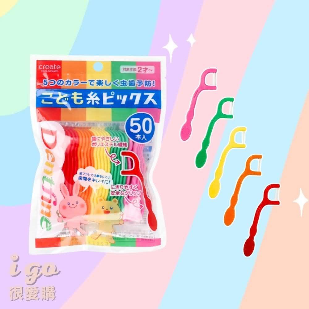 日本 Dentfine 兒童彩虹牙線棒50入 幼兒牙線 2歲以上適用 兒童牙線 安全牙線棒