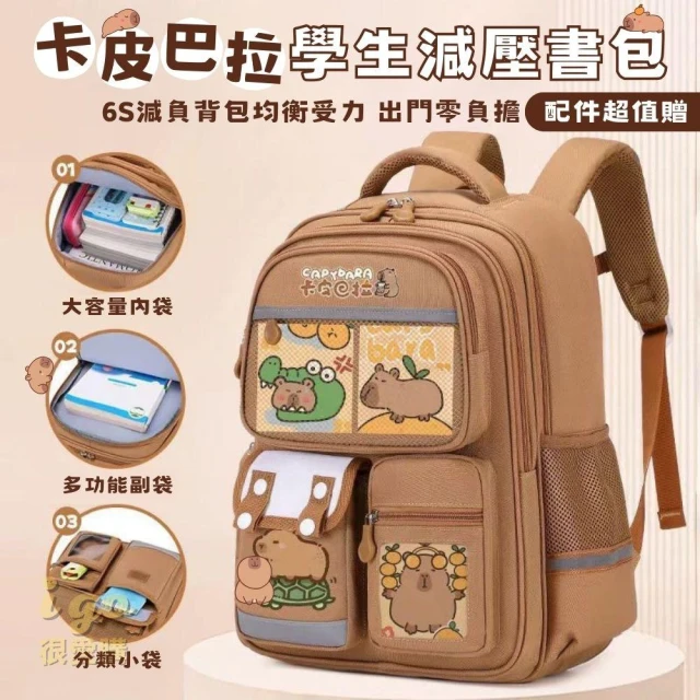 卡皮巴拉學生書包 後背包 水豚君書包 大容量 國小書包 減壓護脊書包 書包 雙肩包