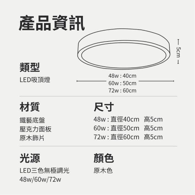 原木LED吸頂燈48W無極調光|遙控器|木紋實木|LED晶片|北歐日式風|客廳燈|房間燈
