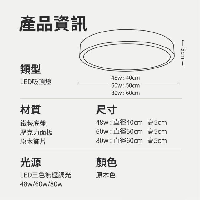 原木LED吸頂燈80W無極調光|遙控器|木紋實木|LED晶片|北歐日式風|客廳燈|房間燈