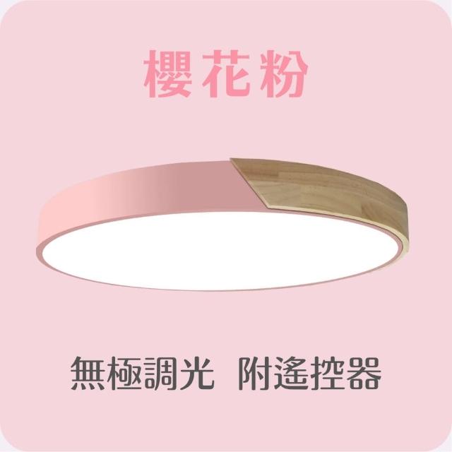 原木LED馬卡龍吸頂燈48W無極調光|遙控器|木紋實木|LED晶片|北歐日式風|客廳燈|房間燈